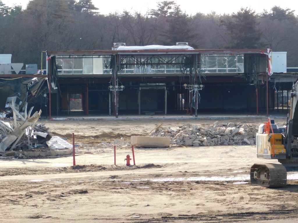 I went to the mall almost every weekend for seven months shooting the interior, the exterior and its dismemberment. I stood along the fence on Boston Road in the rain, the snow and the freezing cold. It took me months to recover from the emotional roller coaster of watching it being torn apart. As a teenager I spent quite a bit of time there when I would spend the weekend at my dad’s house in Indian Orchard. My era of the mall was after the 1986 renovations which added the food court and changed the Steiger’s court to the sunken water fountain.